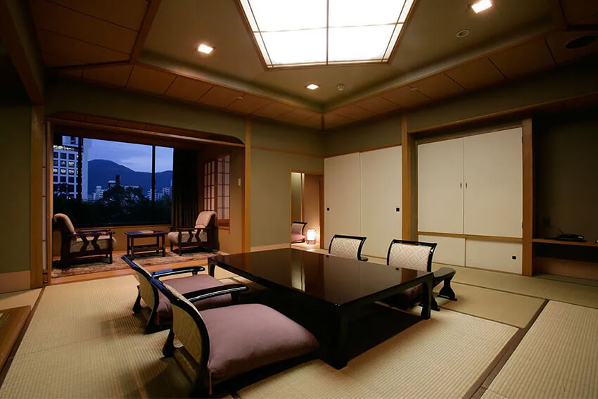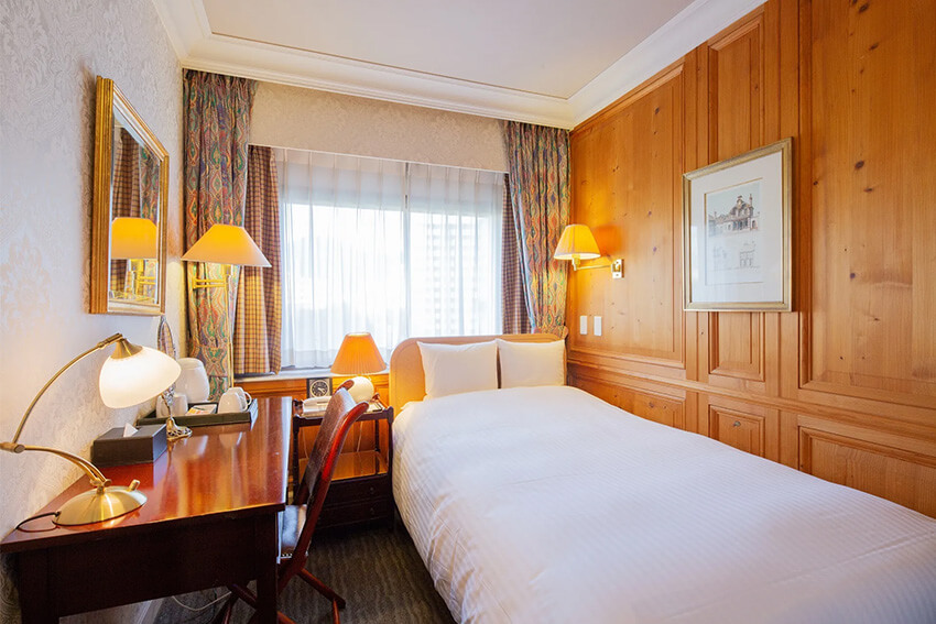 日本庭園を望むそこかしこに和洋の粋が宿る客室は当ホテルならでは。洋室はヨーロッパ製の調度品をしつらえた全室趣が異なる邸宅風。 和室は全室に檜風呂を備え、床の間や明かり取りなどにも配慮した本格的な造りです。心もからだもゆるりとほどける時間をお過ごしください。