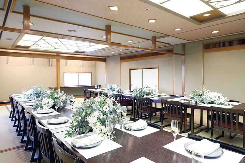ベルギー伯爵家所縁の建築デザイナーが手掛けた洋の宴会場と、長い歴史を歩んできた当館の伝統を引き継ぐ和の会場。 古今の美味とモダンな旬を織り合わせて提供する料理の数々。 北九州最大級の宴会場数と面積、最新設備を誇る宴会場は、お集まりにふさわしい迎賓館として、地域の皆様に愛されるスポットです。