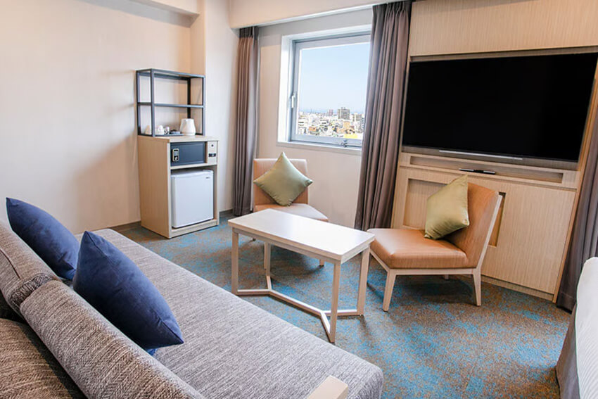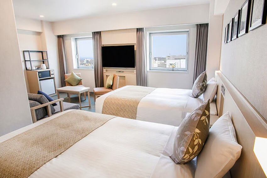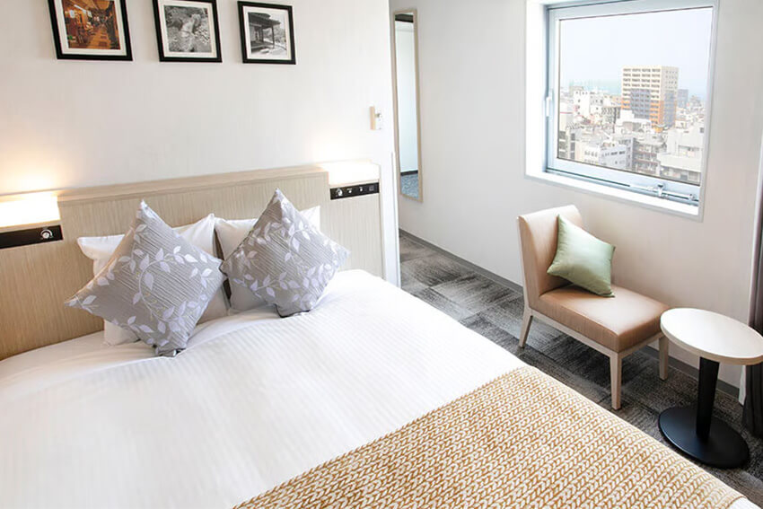 総客室数228室。7タイプのお部屋をご用意し、ビジネスからカップル、 お友達同士やファミリーまで、お客様のニーズに合わせて選択していただくことができます。 明るく温かみのある色調で整えられた室内は、いずれも機能的で快適な空間。 また睡眠にこだわり、ほぼすべてのお部屋でアメリカの高級家具メーカー、シモンズ社のベッドを採用しています。