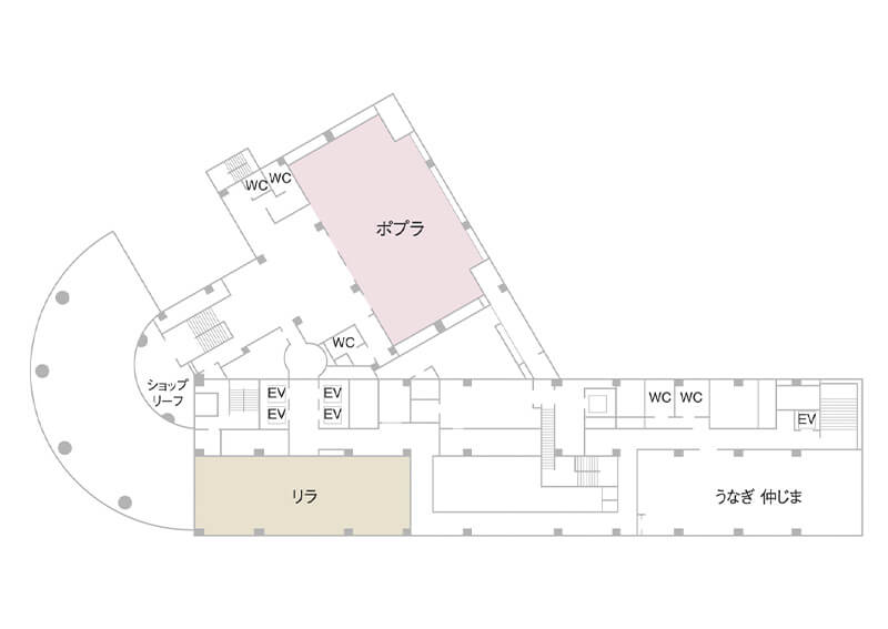 2階に配したバンケットルームは、シアター形式で270名収容の「ポプラ」と、160名収容の「リラ」。スライディングウォールで分割ができ、スタイルや人数に合わせてのアレンジが可能です。他、館内にはレストランが3店舗ございます。
