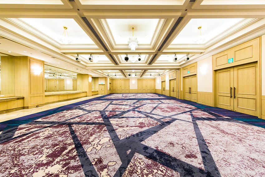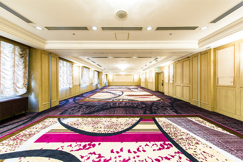 2階に配したバンケットルームは、シアター形式で270名収容の「ポプラ」と、160名収容の「リラ」。 スライディングウォールで分割ができ、スタイルや人数に合わせてのアレンジが可能です。