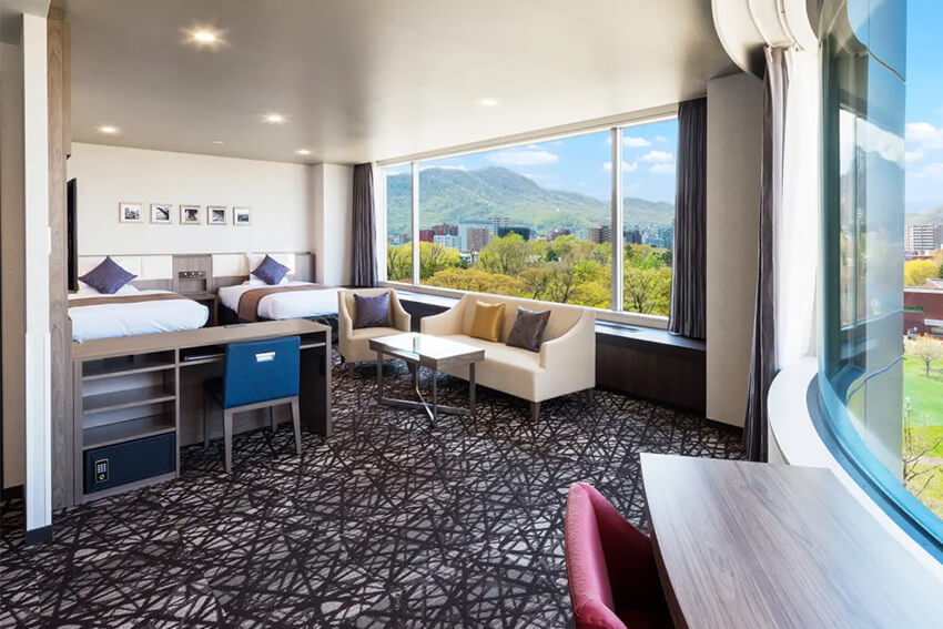ホテルマイステイズ札幌中島公園では、2016年に改装が行われ完璧なデザインと素晴らしい景色が融合しました。窓の外には自然が広がり、北海道での滞在に最高の場所をご提供します。 JR札幌駅からホテルまで地下鉄でわずか10分、新千歳空港からは1時間以内でアクセスできます。空港からは、当ホテルから数分の距離にある中島公園まで直通のバスをご利用いただけます。